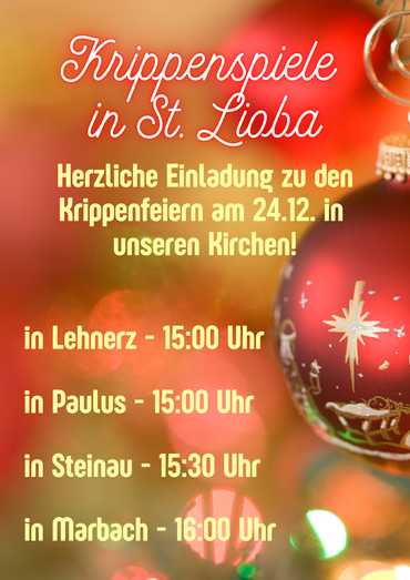 Familienchristmette (ohne Krippenspiel) um 17.00 Uhr in St. Paulus.