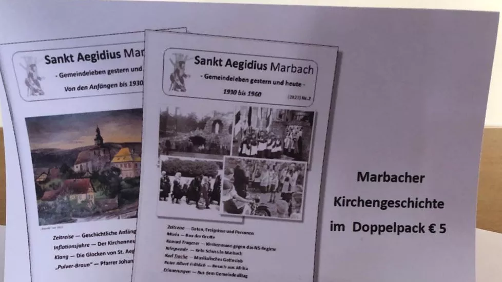 Dieses und vieles mehr erfuhr man in der Lebendigen Zeitreise am 6. September 2023 in der Marbacher Kirche anlässlich des 100jährigen Kirchbaujubiläums der Pfarrgemeinde St. Ägidius. Auf der Großbildleinwand präsentierten Konrad Neumann, Eugen Weber und Reinhold Gutberlet Fotos, Daten und Fakten zur Kirchengeschichte Marbachs. Lebendig wurde der Abend durch vielfältige Beiträge aus dem Publikum, wenn Erinnerung an Aussagen von Eltern und Großeltern Zusatzinformationen lieferten wie z.B. die nicht widerstandslose Einführung des „Teufelswerks“ Elektrizität 1921. So war die Zeitreise Vortrag und Gespräch und endete geschichtlich mit den 1930er Jahren und zeitlich nach ca. 2 Stunden.