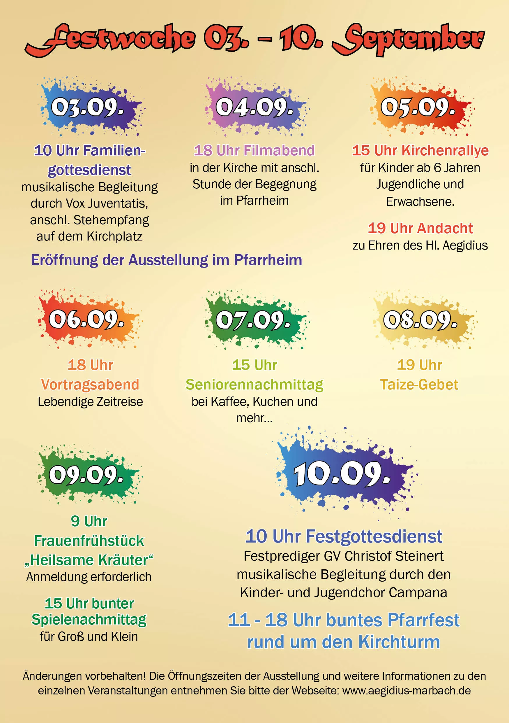 Festwoche zum 100-jährigem Kirchweihjubiläum St. Aegidius, Marbach 03.09.2023 – 10.09.2023