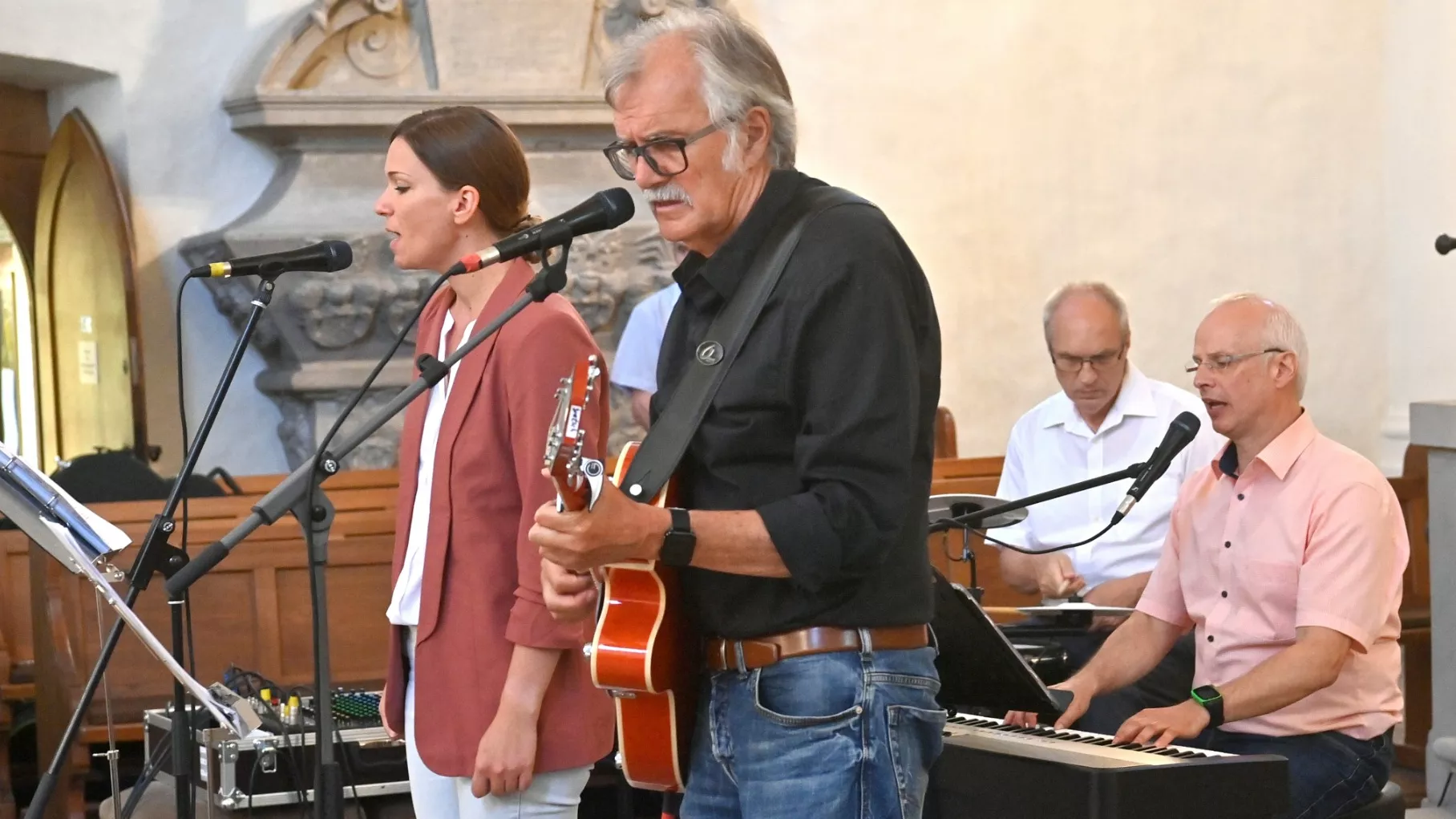 Da während der Pandemie keine größeren Ensembles in der Kirche auftreten konnten, ist die Songgruppe Lehnerz seit dieser Zeit zu einem kleinen, aber feinen Quartett zusammengeschrumpft, ohne dabei ihre Attraktivität und Begeisterungsfähigkeit verloren zu haben.